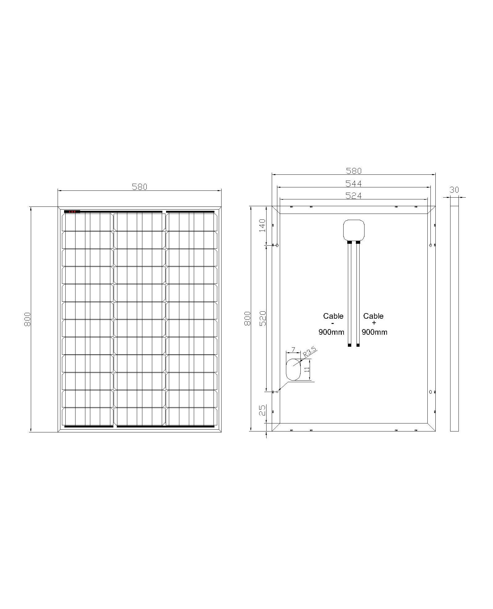 The panel is fitted with 90cm of special solar cable which can work at high roof temperatures, with minimum power losses. A pair of male / female MC4 connectors are crimped on the end of cable for easy connection to other solar panels, your existing system or 2.5mm extension cable. The MC4 connectors can also be cut off when wiring to the screw terminals of a solar charge controller.